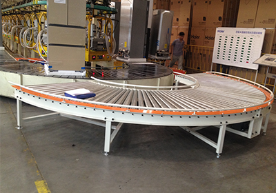 在鏈板式輸送機的兩側鏈條間加裝板式構件,以達到輸送型態不規則的物品,可在鏈板上加裝專用工裝夾具,并根據工控要求可作為裝配線,或直接采用塑鋼平頂鏈以及不銹鋼平頂鏈作為輸送載體,以實現彎道輸送。